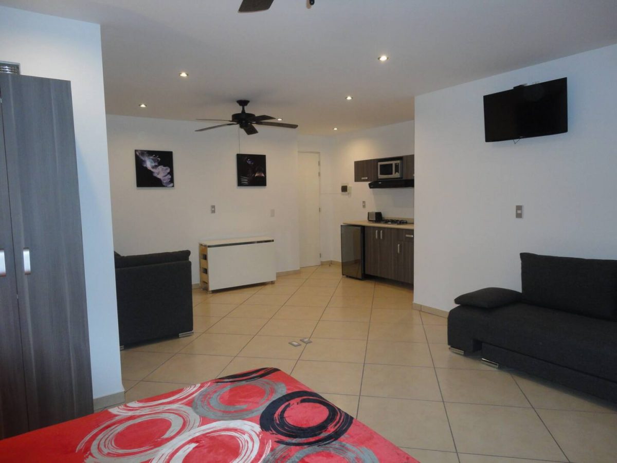 It features with one room with 1 king size bed and 1 sofá bed, with a/c, fan, closet, private bathroom, cable tv, equipped kitchenette with microwave and fridge. Free wi fi available (20mbs).