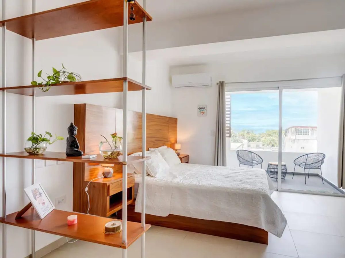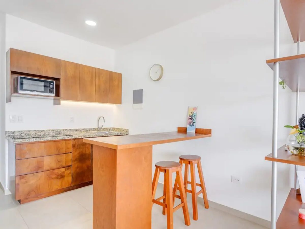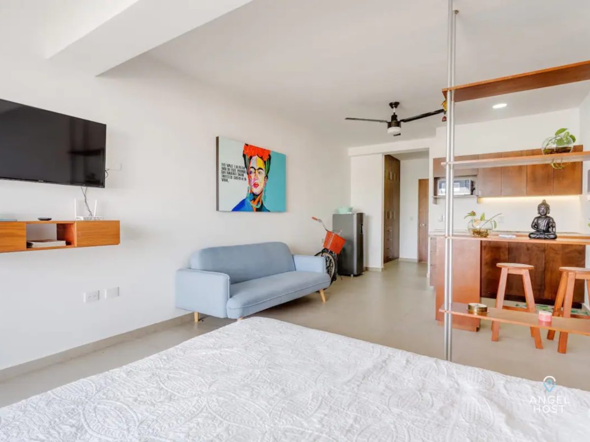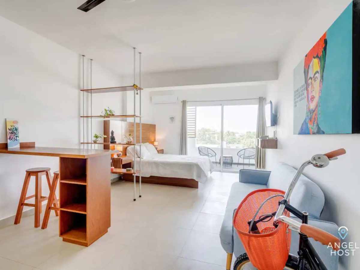 Welcome to our beautiful and fully equipped studio apartment! Immerse yourself in the vacation vibes with a stunning rooftop pool, A/C, a cozy Queen bed, a comfortable double sofa bed, a Smart TV for entertainment, and high-speed internet to stay connected. Step out onto the balcony and soak in the breathtaking views. All the furniture in the apartment is crafted from high-quality Tzalam wood, adding a touch of elegance to your stay.