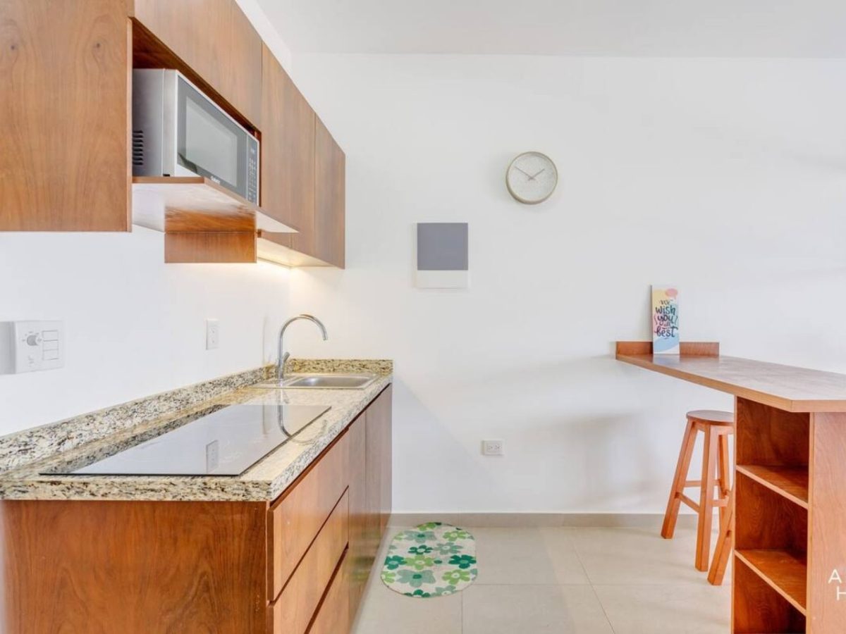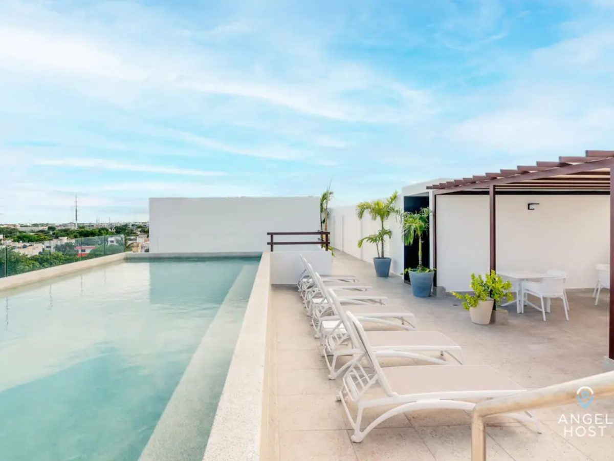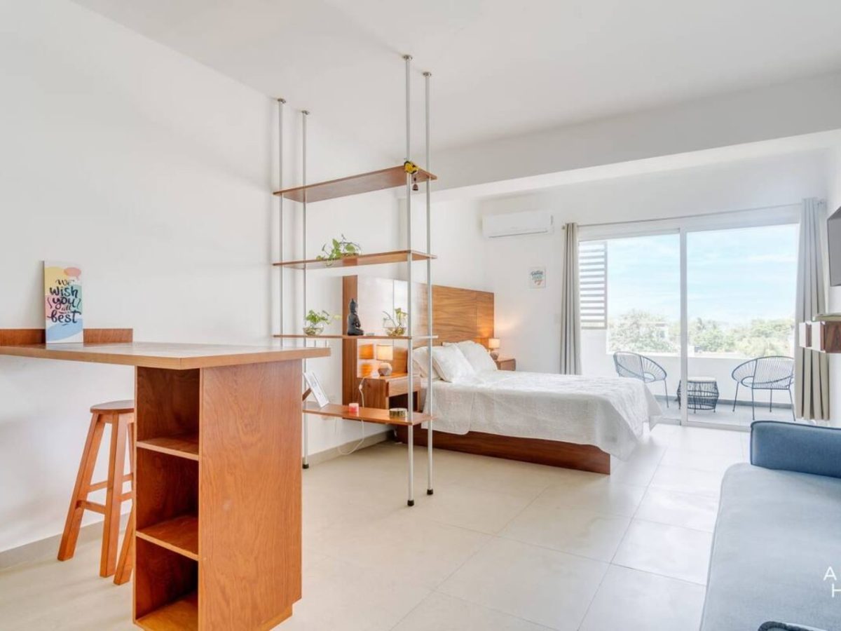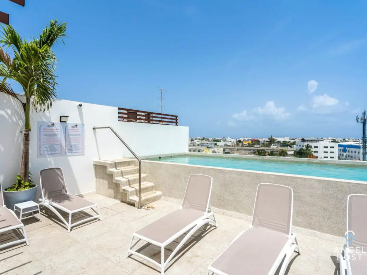 Welcome to our beautiful and fully equipped studio apartment! Immerse yourself in the vacation vibes with a stunning rooftop pool, A/C, a cozy Queen bed, a comfortable double sofa bed, a Smart TV for entertainment, and high-speed internet to stay connected. Step out onto the balcony and soak in the breathtaking views. All the furniture in the apartment is crafted from high-quality Tzalam wood, adding a touch of elegance to your stay.